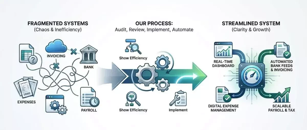 Before we touch your accounting, we audit your tech stack, review your processes, and show you exactly how efficient your financial operations should be. Then we implement it.